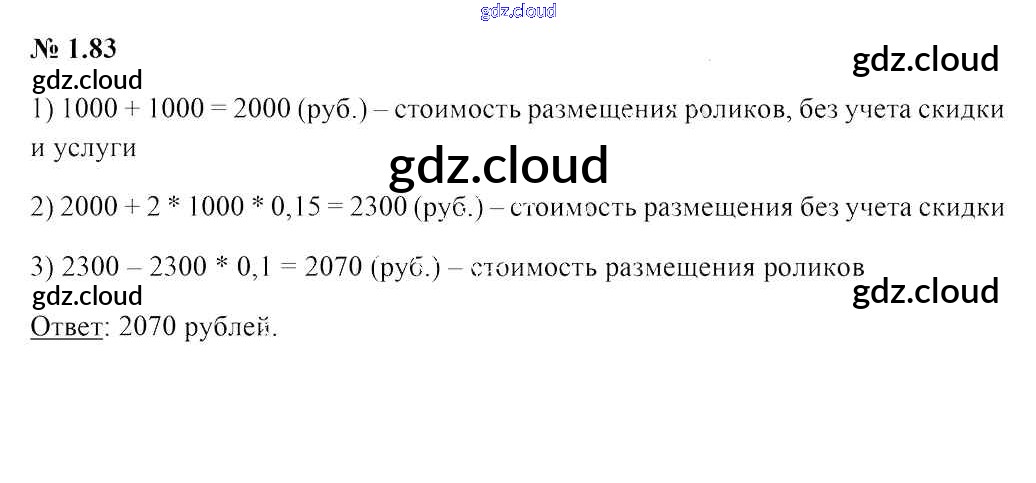 Ответ на задание 1.83 Учебник Алгебра за 9 (девятый) класс Арефьева, Пирютко 2019 онлайн и без номера телефона.