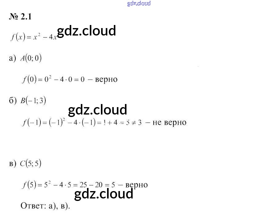 Ответ на задание 2.1 Учебник Алгебра за 9 (девятый) класс Арефьева, Пирютко 2019 онлайн и без номера телефона.