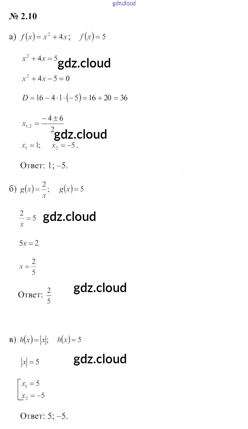Ответ на задание 2.10 Учебник Алгебра за 9 (девятый) класс Арефьева, Пирютко 2019 онлайн и без номера телефона.