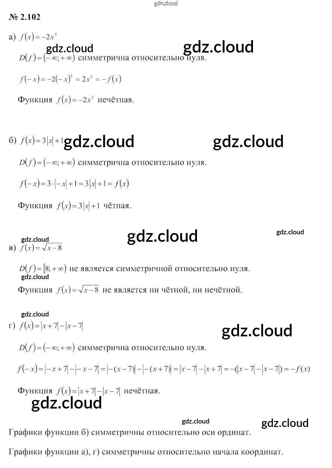 Ответ на задание 2.102 Учебник Алгебра за 9 (девятый) класс Арефьева, Пирютко 2019 онлайн и без номера телефона.