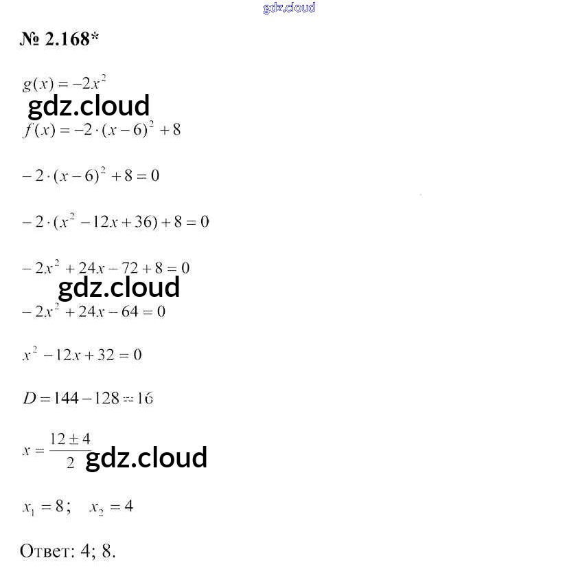 Ответ на задание 2.168 Учебник Алгебра за 9 (девятый) класс Арефьева, Пирютко 2019 онлайн и без номера телефона.