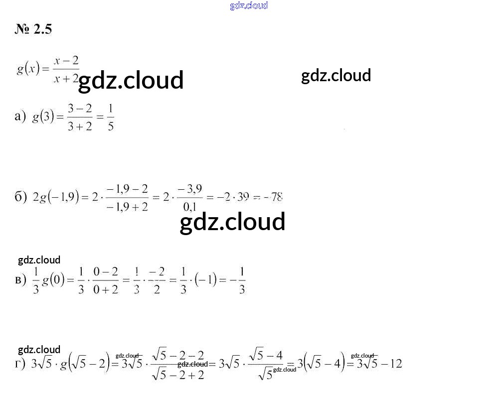 Ответ на задание 2.5 Учебник Алгебра за 9 (девятый) класс Арефьева, Пирютко 2019 онлайн и без номера телефона.