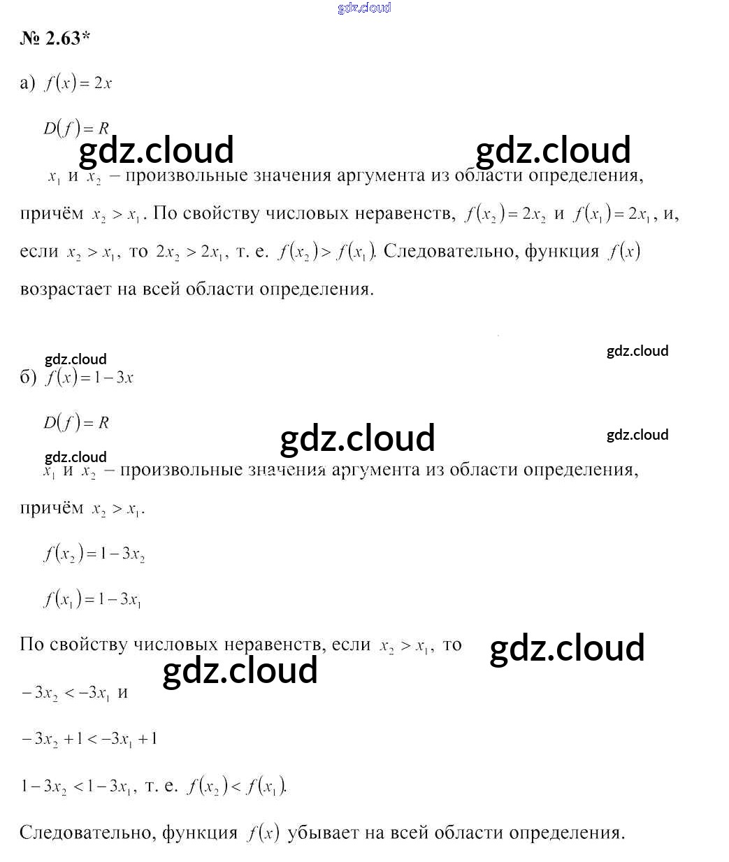 Ответ на задание 2.63 Учебник Алгебра за 9 (девятый) класс Арефьева, Пирютко 2019 онлайн и без номера телефона.