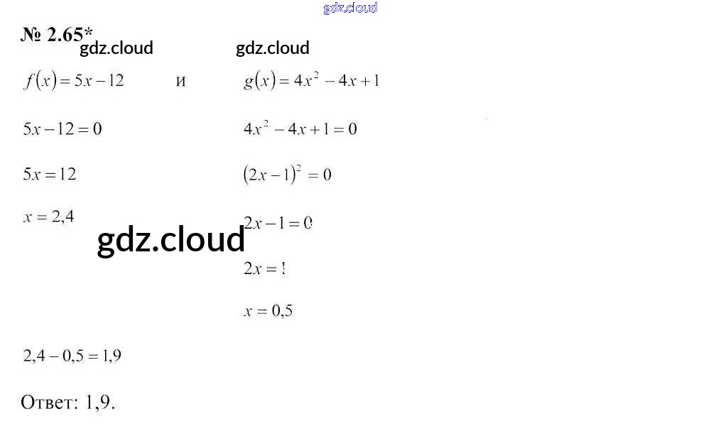 Ответ на задание 2.65 Учебник Алгебра за 9 (девятый) класс Арефьева, Пирютко 2019 онлайн и без номера телефона.
