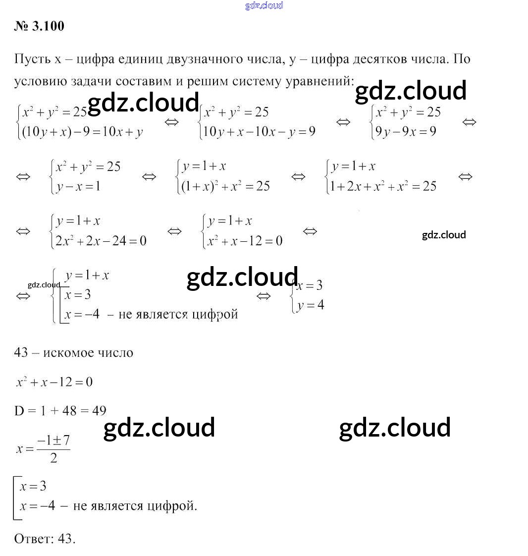 Ответ на задание 3.100 Учебник Алгебра за 9 (девятый) класс Арефьева, Пирютко 2019 онлайн и без номера телефона.