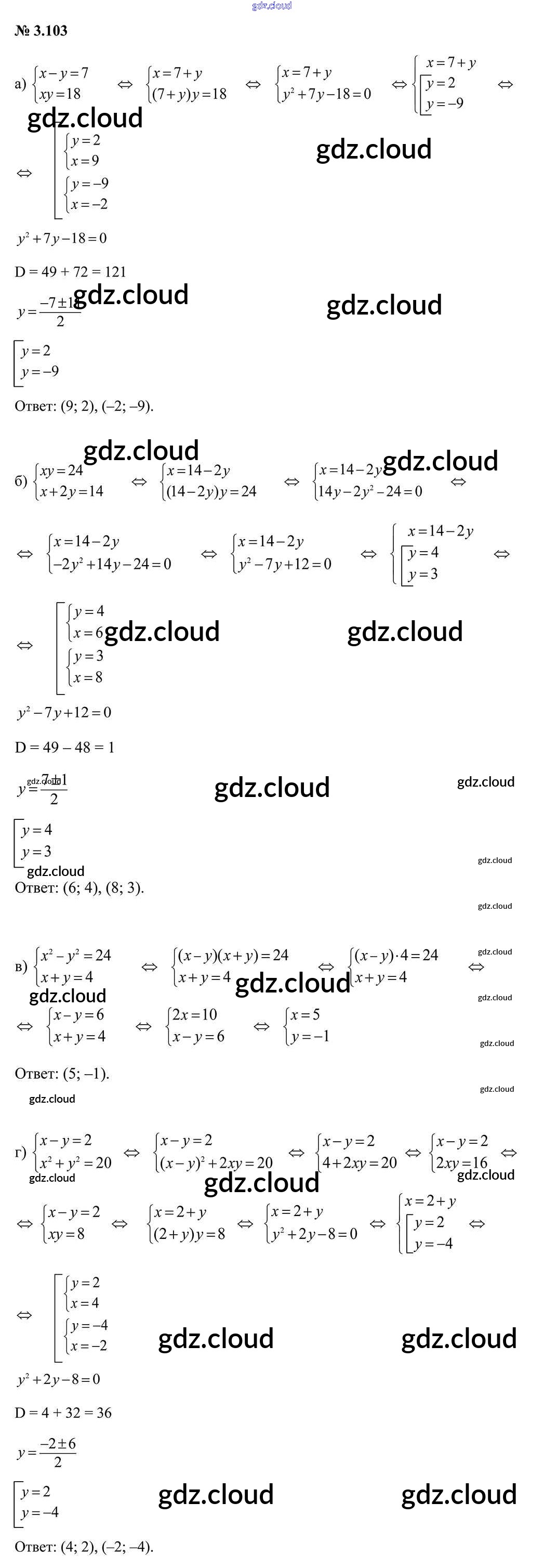Ответ на задание 3.103 Учебник Алгебра за 9 (девятый) класс Арефьева, Пирютко 2019 онлайн и без номера телефона.