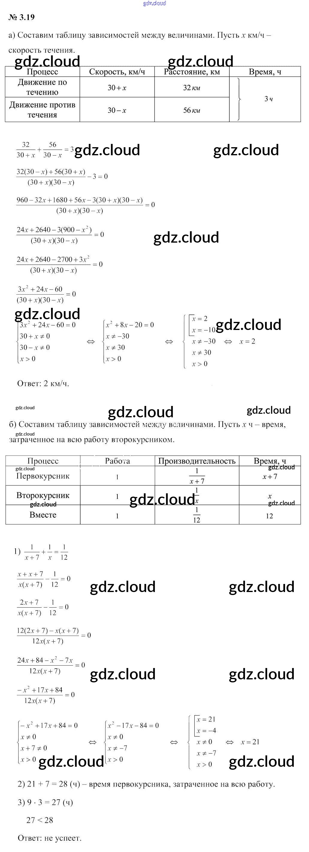 Ответ на задание 3.19 Учебник Алгебра за 9 (девятый) класс Арефьева, Пирютко 2019 онлайн и без номера телефона.