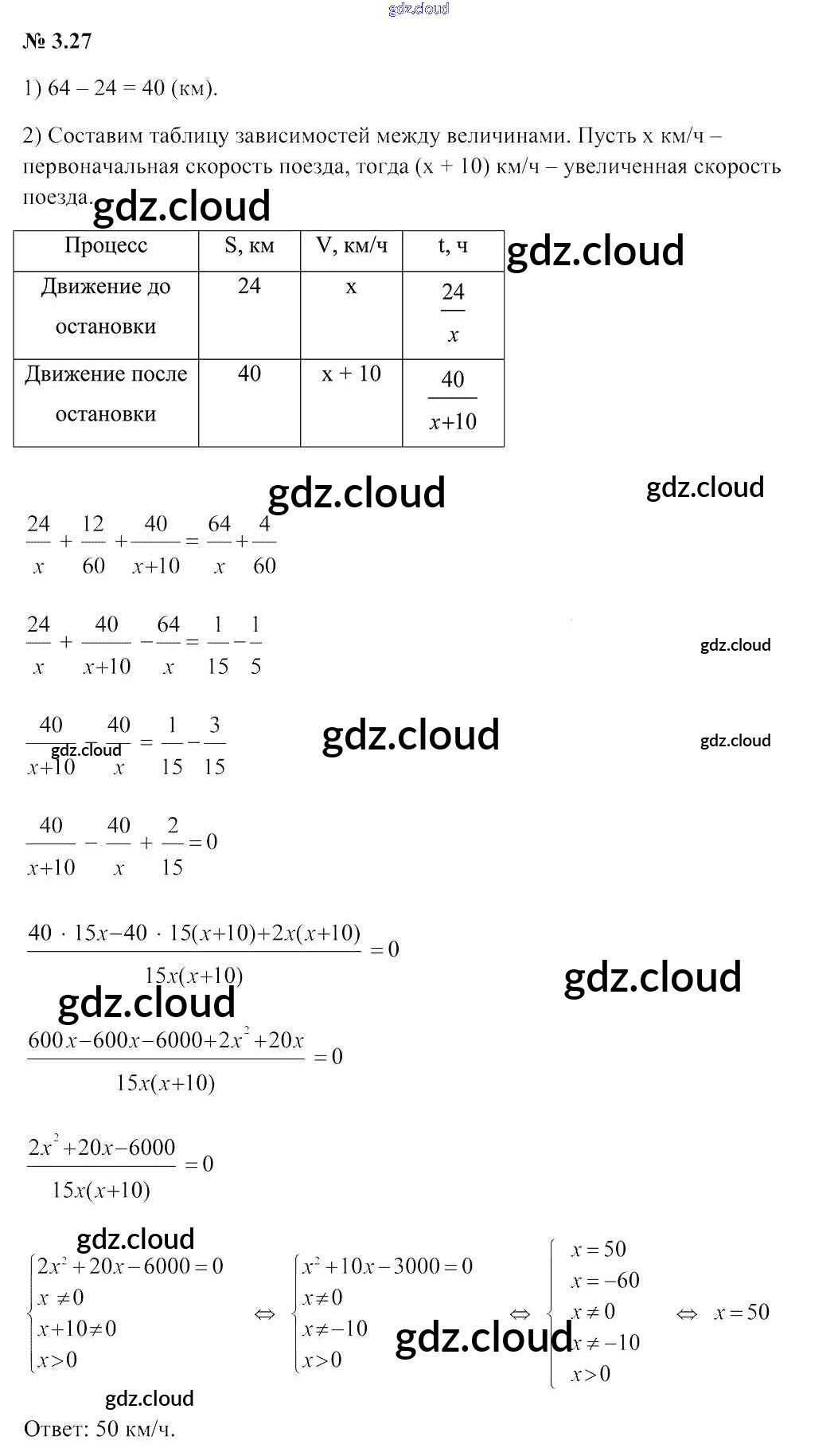Ответ на задание 3.27 Учебник Алгебра за 9 (девятый) класс Арефьева, Пирютко 2019 онлайн и без номера телефона.