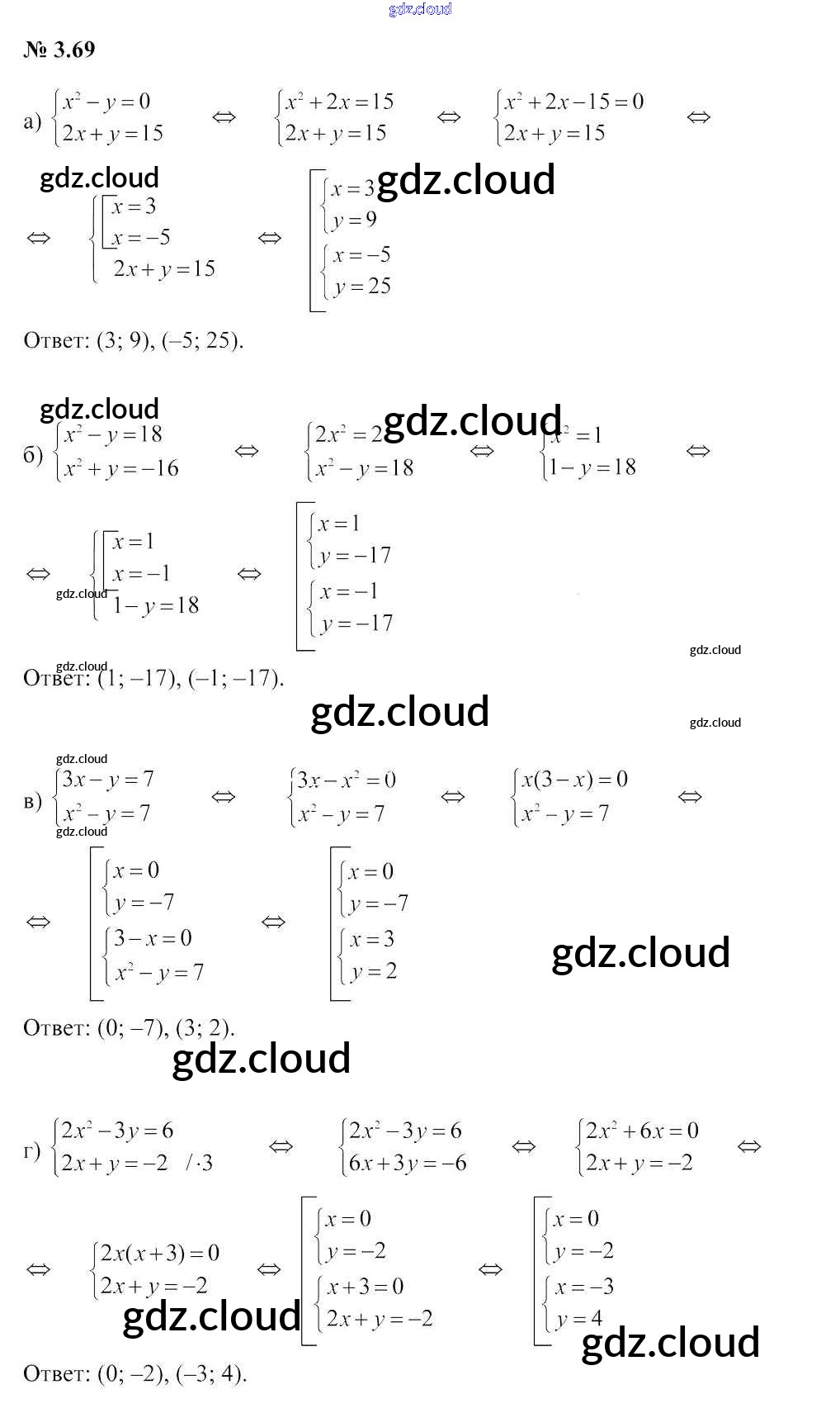 Ответ на задание 3.69 Учебник Алгебра за 9 (девятый) класс Арефьева, Пирютко 2019 онлайн и без номера телефона.