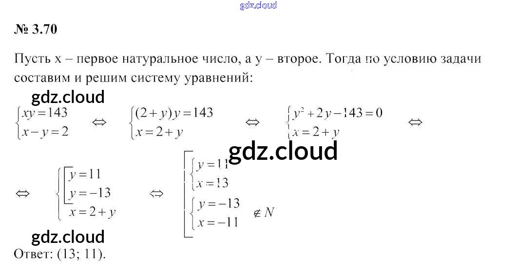 Ответ на задание 3.70 Учебник Алгебра за 9 (девятый) класс Арефьева, Пирютко 2019 онлайн и без номера телефона.