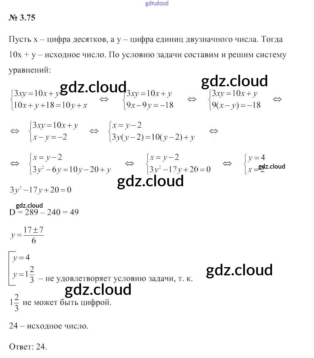 Ответ на задание 3.75 Учебник Алгебра за 9 (девятый) класс Арефьева, Пирютко 2019 онлайн и без номера телефона.
