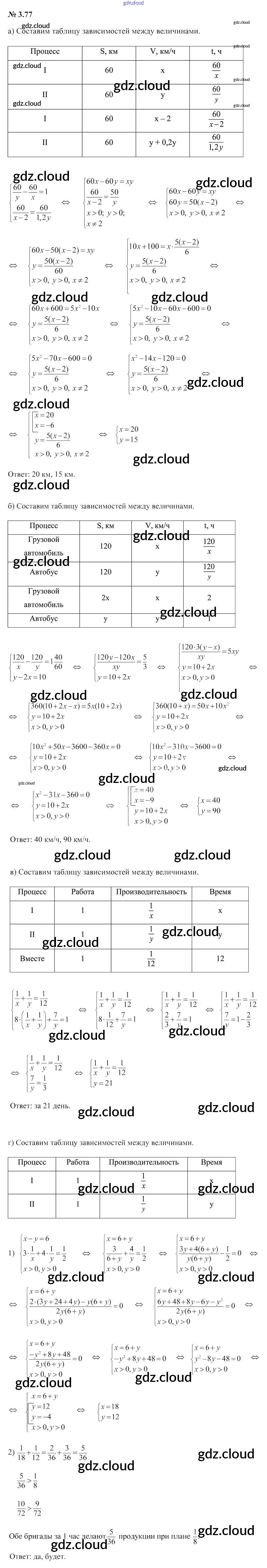 Ответ на задание 3.77 Учебник Алгебра за 9 (девятый) класс Арефьева, Пирютко 2019 онлайн и без номера телефона.