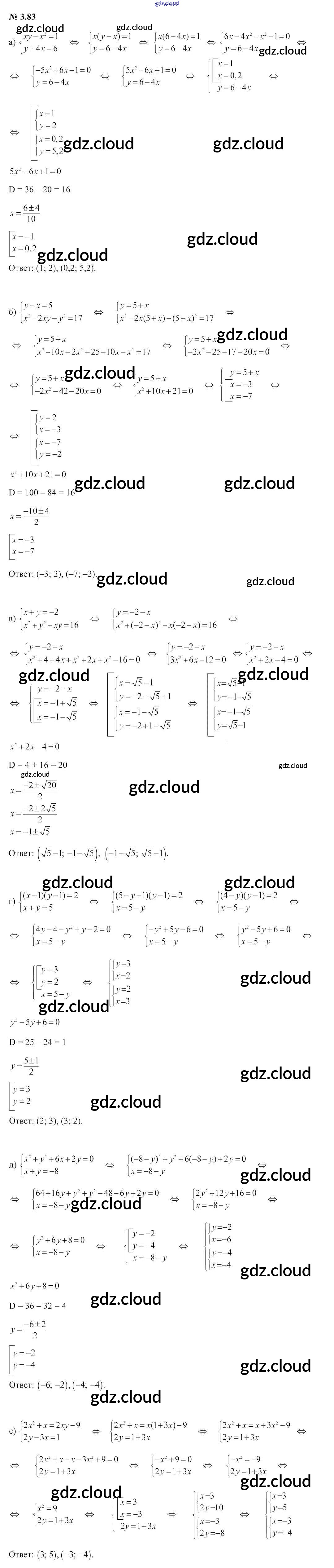 Ответ на задание 3.83 Учебник Алгебра за 9 (девятый) класс Арефьева, Пирютко 2019 онлайн и без номера телефона.