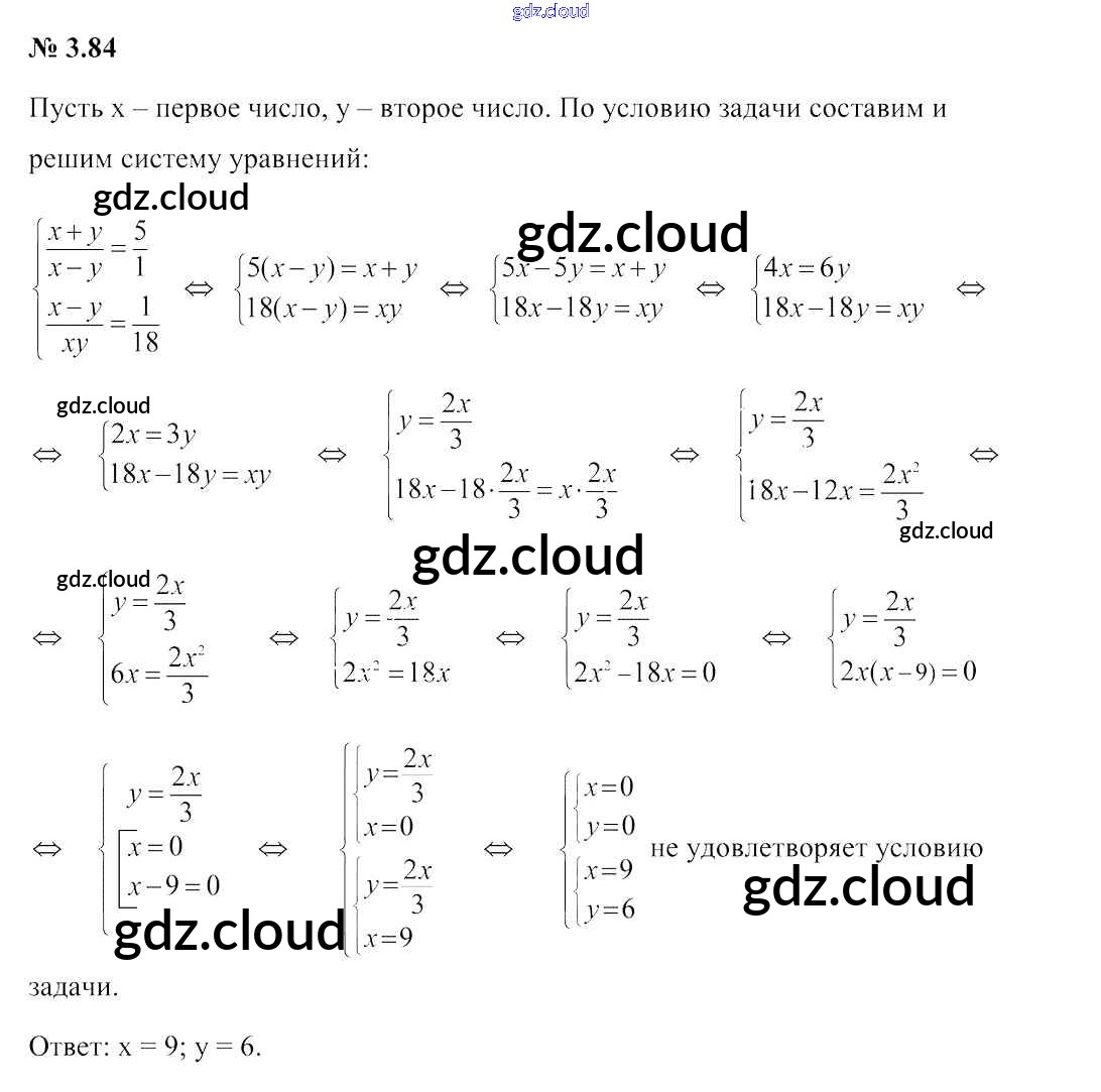 Ответ на задание 3.84 Учебник Алгебра за 9 (девятый) класс Арефьева, Пирютко 2019 онлайн и без номера телефона.
