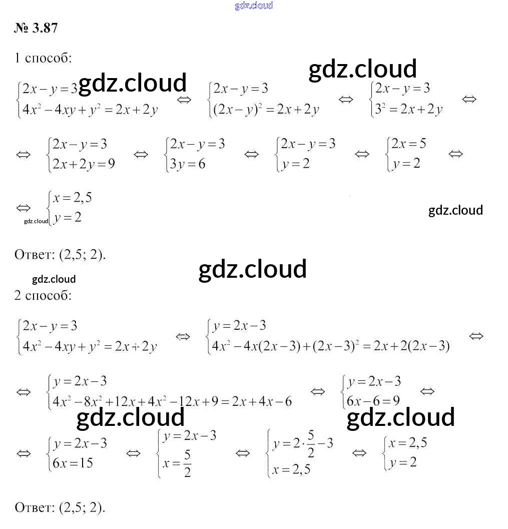 Ответ на задание 3.87 Учебник Алгебра за 9 (девятый) класс Арефьева, Пирютко 2019 онлайн и без номера телефона.