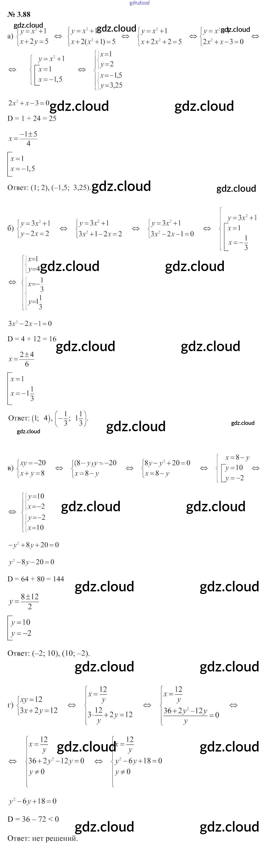 Ответ на задание 3.88 Учебник Алгебра за 9 (девятый) класс Арефьева, Пирютко 2019 онлайн и без номера телефона.