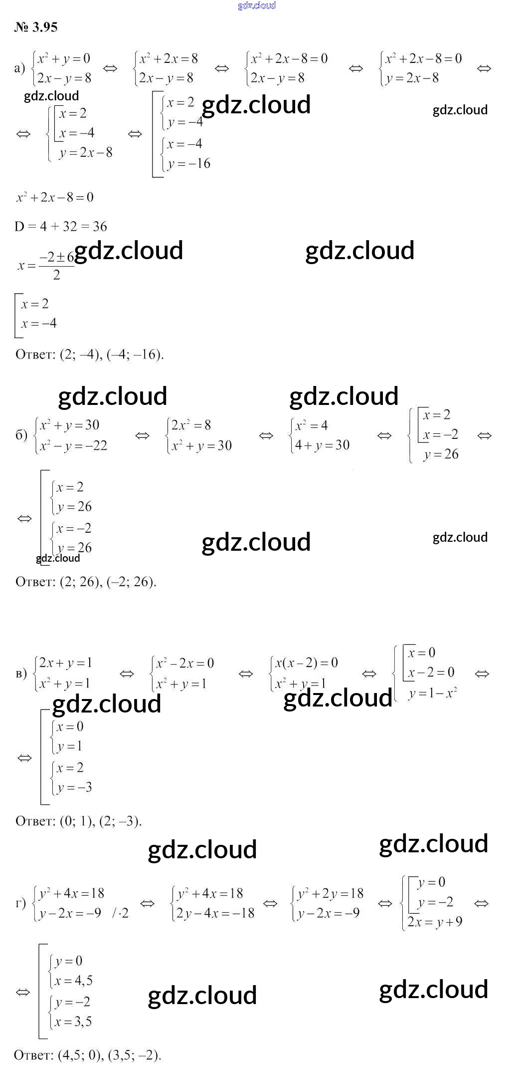 Ответ на задание 3.95 Учебник Алгебра за 9 (девятый) класс Арефьева, Пирютко 2019 онлайн и без номера телефона.