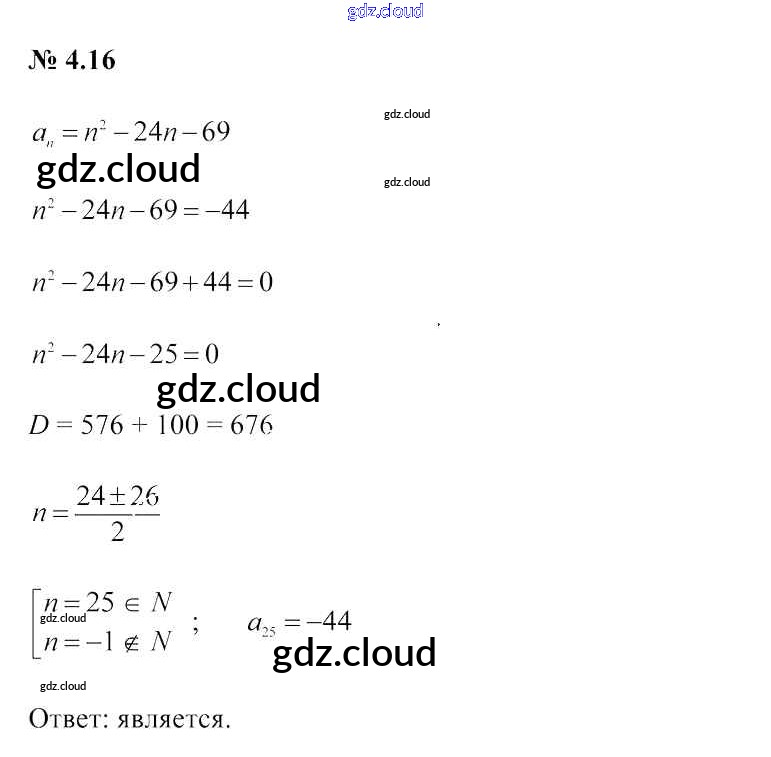 Ответ на задание 4.16 Учебник Алгебра за 9 (девятый) класс Арефьева, Пирютко 2019 онлайн и без номера телефона.