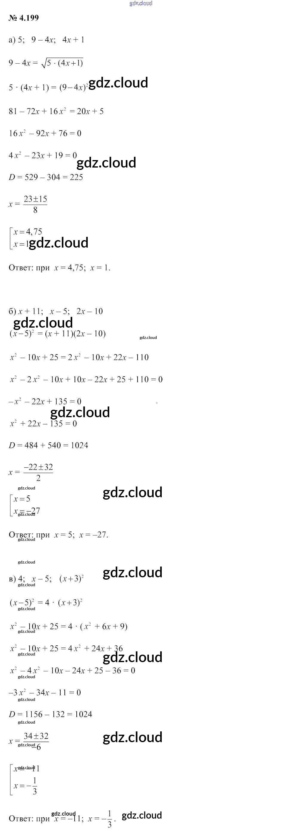 Ответ на задание 4.199 Учебник Алгебра за 9 (девятый) класс Арефьева, Пирютко 2019 онлайн и без номера телефона.