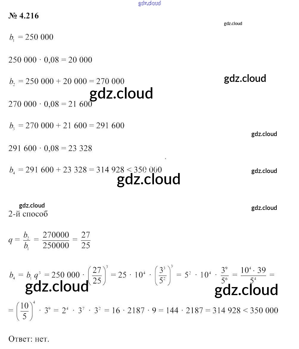 Ответ на задание 4.216 Учебник Алгебра за 9 (девятый) класс Арефьева, Пирютко 2019 онлайн и без номера телефона.