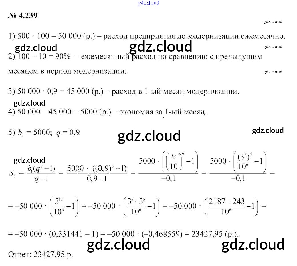 Ответ на задание 4.239 Учебник Алгебра за 9 (девятый) класс Арефьева, Пирютко 2019 онлайн и без номера телефона.