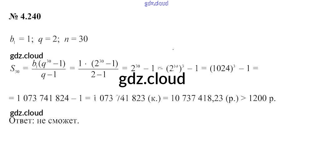 Ответ на задание 4.240 Учебник Алгебра за 9 (девятый) класс Арефьева, Пирютко 2019 онлайн и без номера телефона.