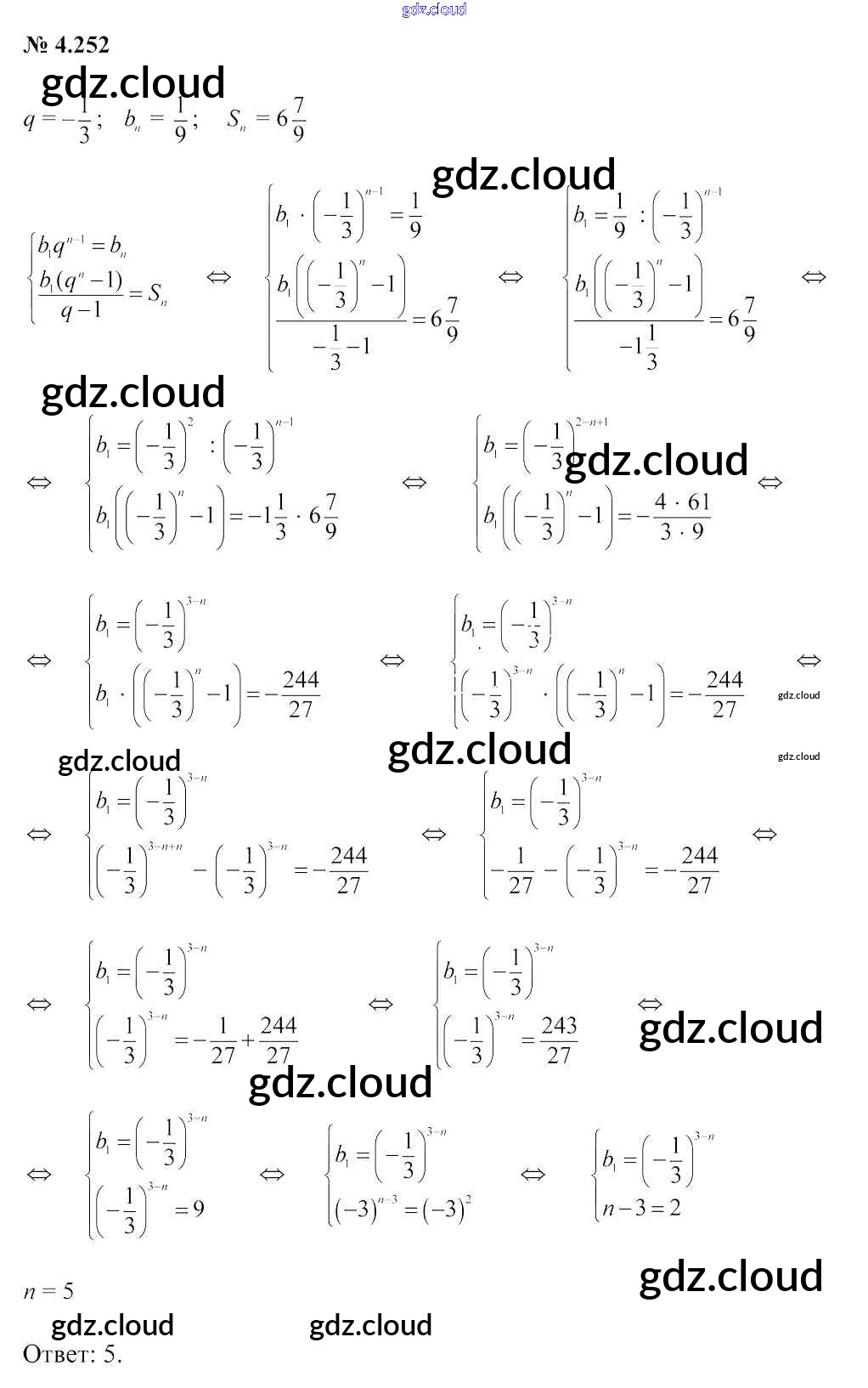 Ответ на задание 4.252 Учебник Алгебра за 9 (девятый) класс Арефьева, Пирютко 2019 онлайн и без номера телефона.