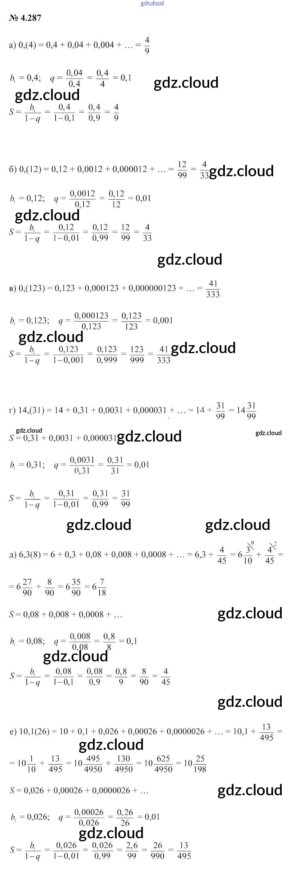 Ответ на задание 4.287 Учебник Алгебра за 9 (девятый) класс Арефьева, Пирютко 2019 онлайн и без номера телефона.