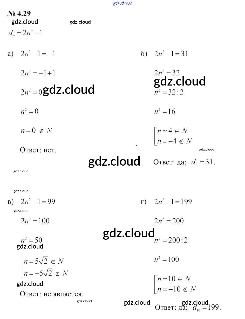 Ответ на задание 4.29 Учебник Алгебра за 9 (девятый) класс Арефьева, Пирютко 2019 онлайн и без номера телефона.