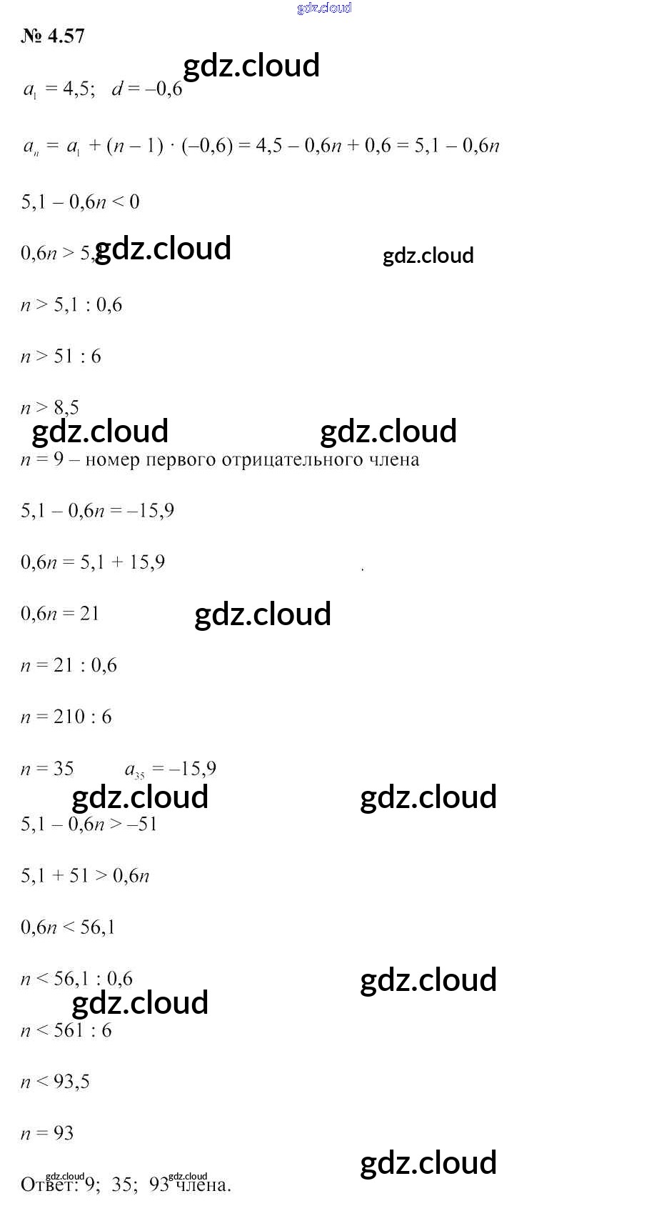 Ответ на задание 4.57 Учебник Алгебра за 9 (девятый) класс Арефьева, Пирютко 2019 онлайн и без номера телефона.