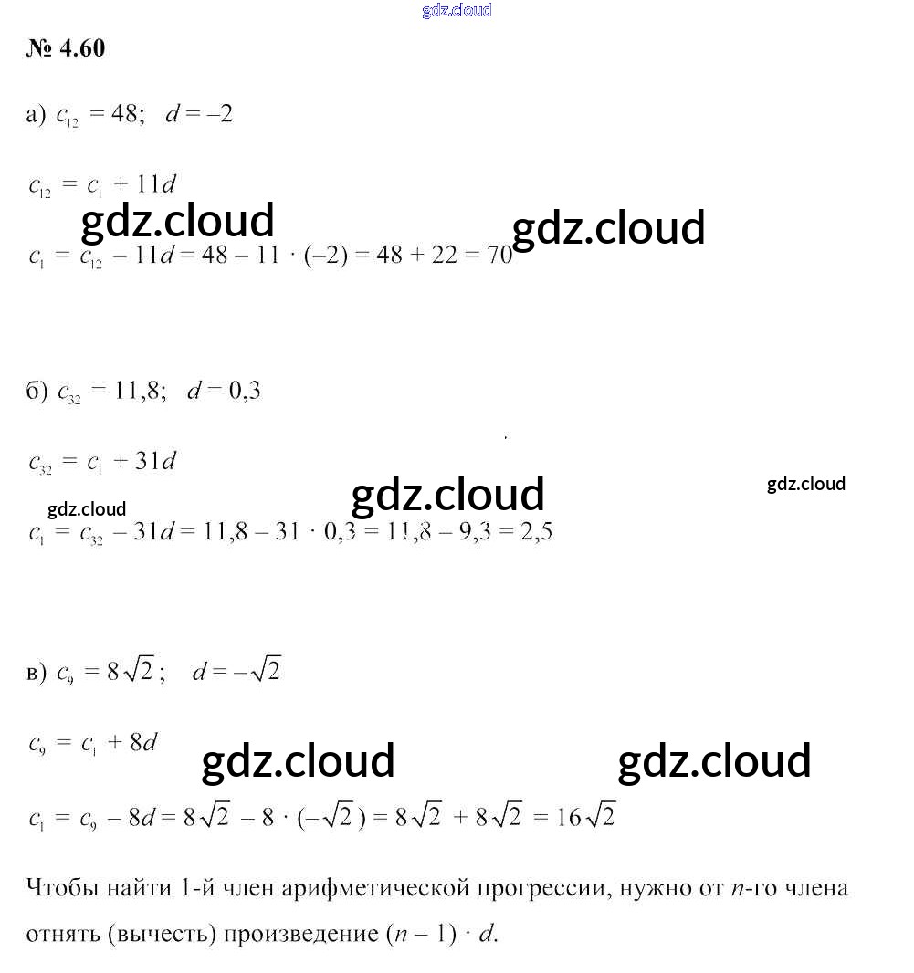 Ответ на задание 4.60 Учебник Алгебра за 9 (девятый) класс Арефьева, Пирютко 2019 онлайн и без номера телефона.