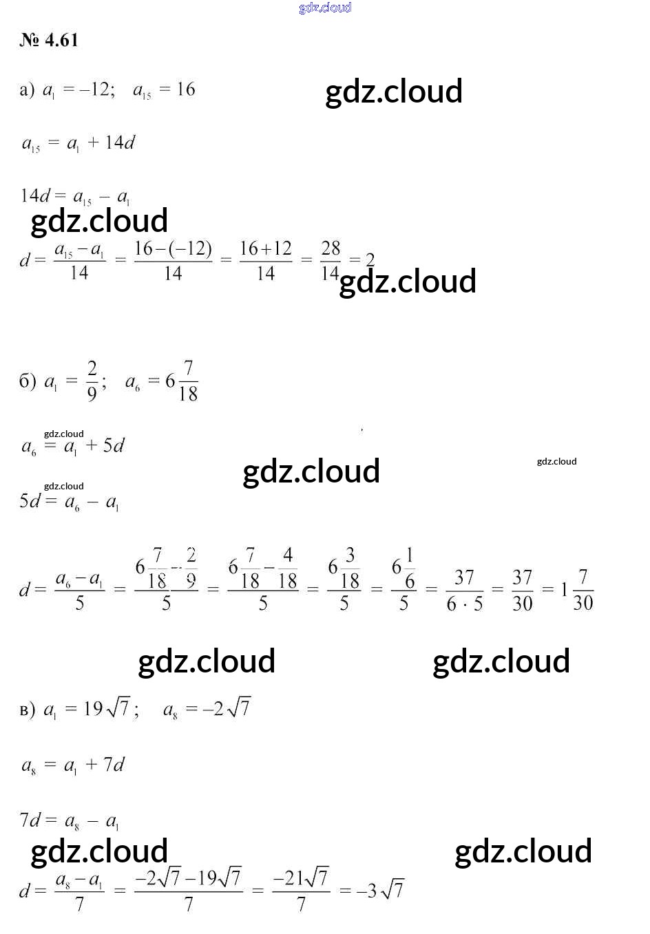 Ответ на задание 4.61 Учебник Алгебра за 9 (девятый) класс Арефьева, Пирютко 2019 онлайн и без номера телефона.