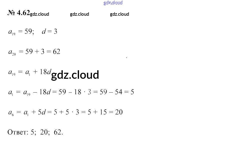 Ответ на задание 4.62 Учебник Алгебра за 9 (девятый) класс Арефьева, Пирютко 2019 онлайн и без номера телефона.