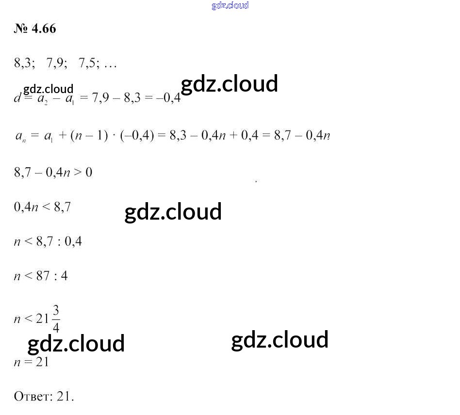 Ответ на задание 4.66 Учебник Алгебра за 9 (девятый) класс Арефьева, Пирютко 2019 онлайн и без номера телефона.