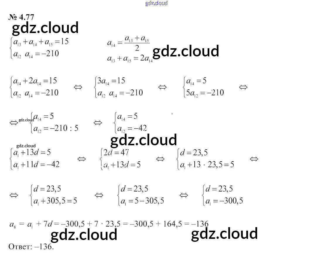 Ответ на задание 4.77 Учебник Алгебра за 9 (девятый) класс Арефьева, Пирютко 2019 онлайн и без номера телефона.