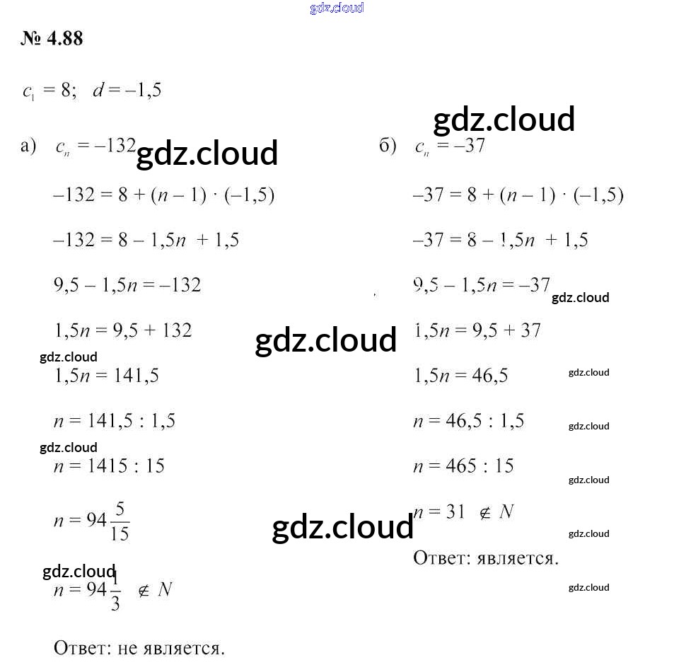 Ответ на задание 4.88 Учебник Алгебра за 9 (девятый) класс Арефьева, Пирютко 2019 онлайн и без номера телефона.