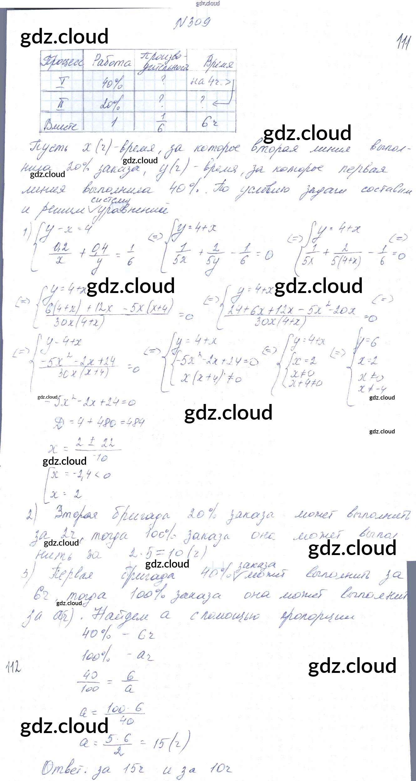 Ответ на задание 309 Учебник Алгебра за 9 (девятый) класс Арефьева, Пирютко 2019 онлайн и без номера телефона.