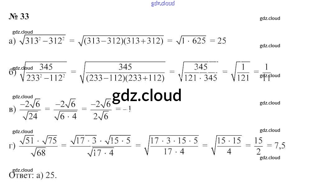 Ответ на задание 33 Учебник Алгебра за 9 (девятый) класс Арефьева, Пирютко 2019 онлайн и без номера телефона.