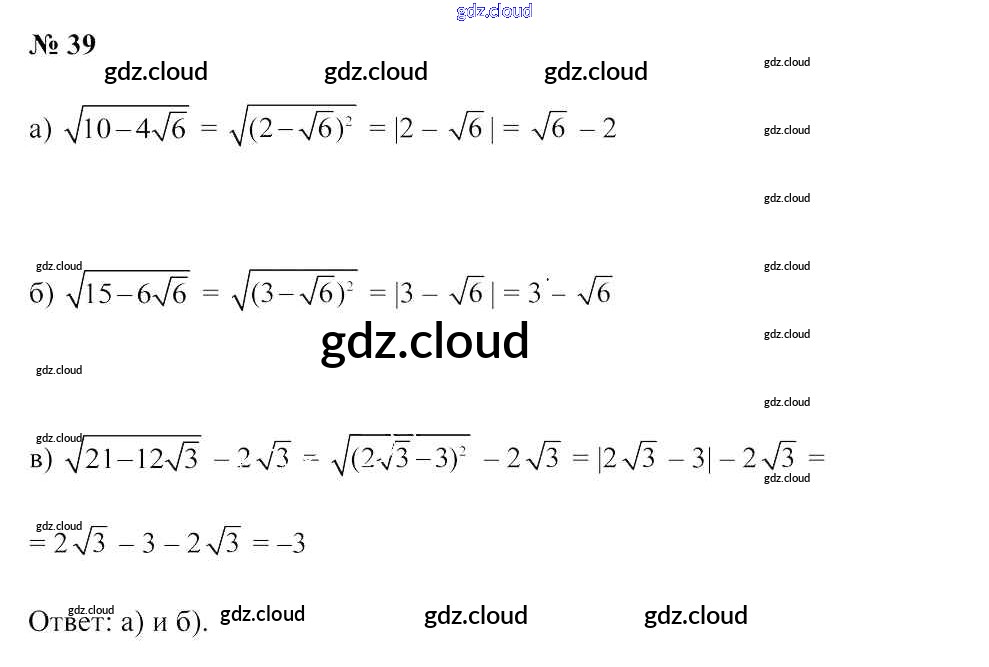 Ответ на задание 39 Учебник Алгебра за 9 (девятый) класс Арефьева, Пирютко 2019 онлайн и без номера телефона.