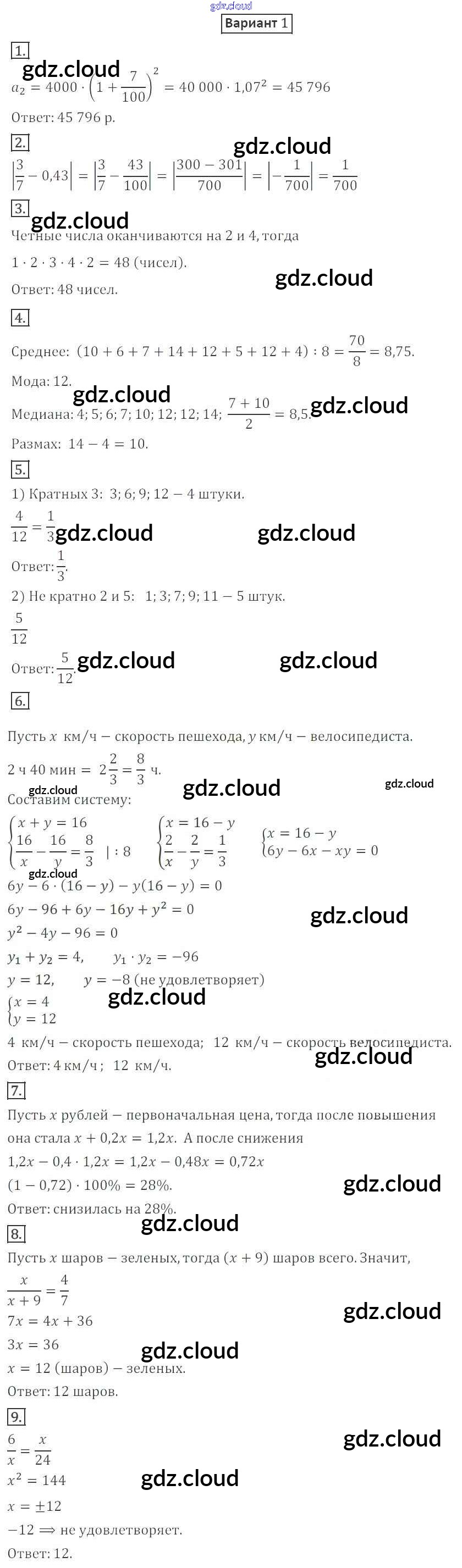 КР-4 Ответы к Контрольным работам по Алгебре 9 класс Дидактические материалы Мерзляк Алгоритм успеха Вентана-граф