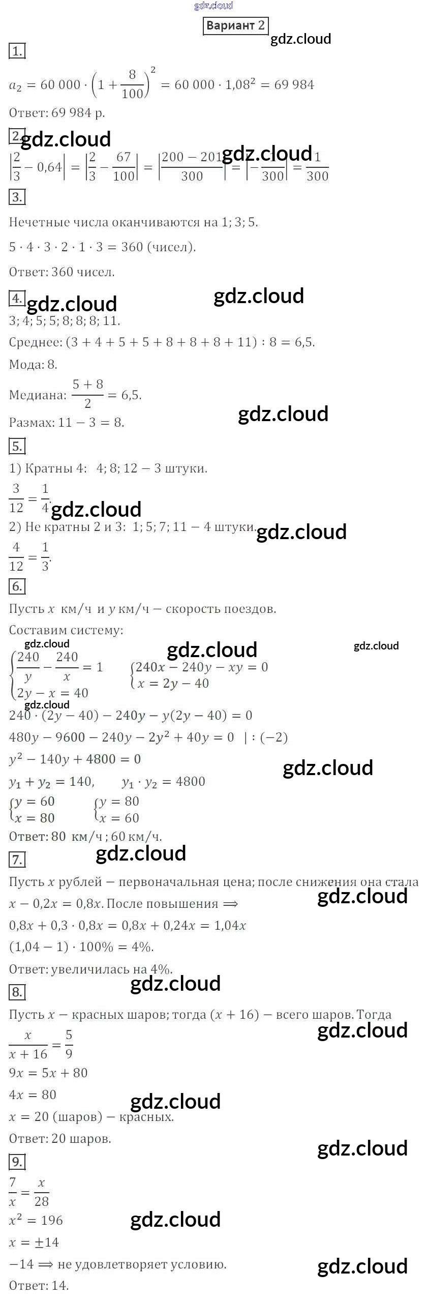 КР-4 Ответы к Контрольным работам по Алгебре 9 класс Дидактические материалы Мерзляк Алгоритм успеха Вентана-граф