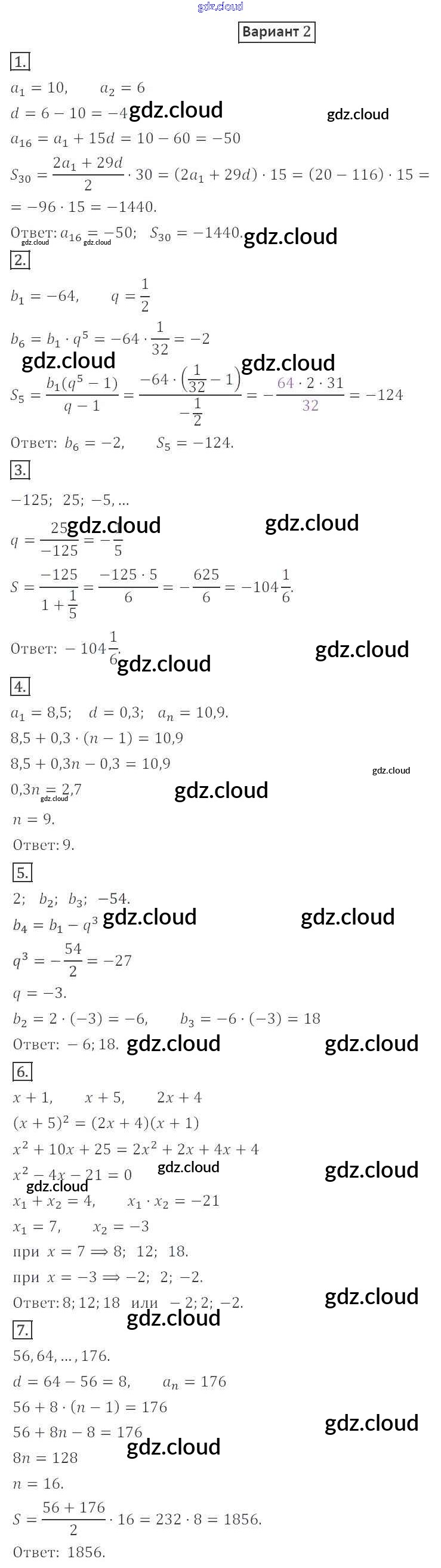 КР-5 Ответы к Контрольным работам по Алгебре 9 класс Дидактические материалы Мерзляк Алгоритм успеха Вентана-граф