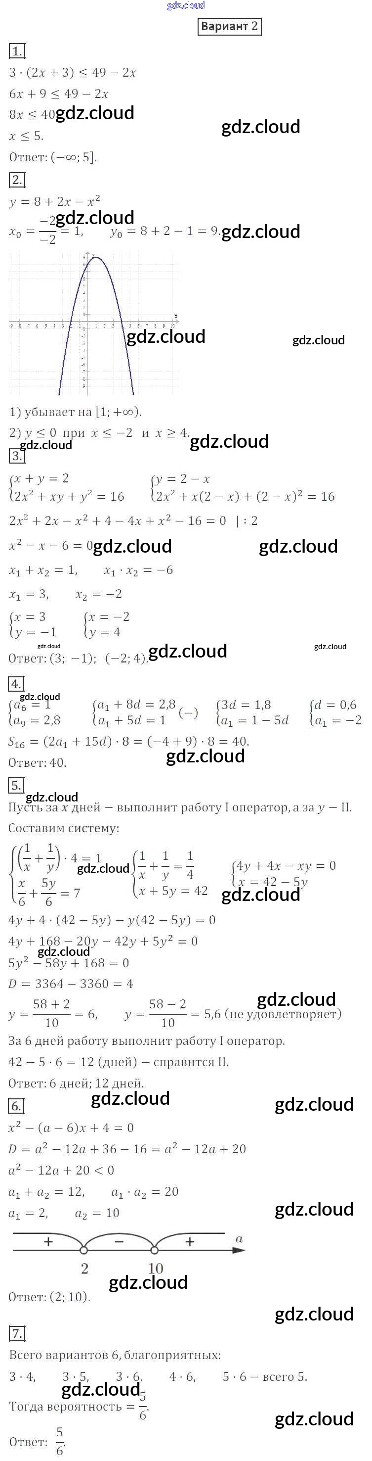 КР-6 Ответы к Контрольным работам по Алгебре 9 класс Дидактические материалы Мерзляк Алгоритм успеха Вентана-граф