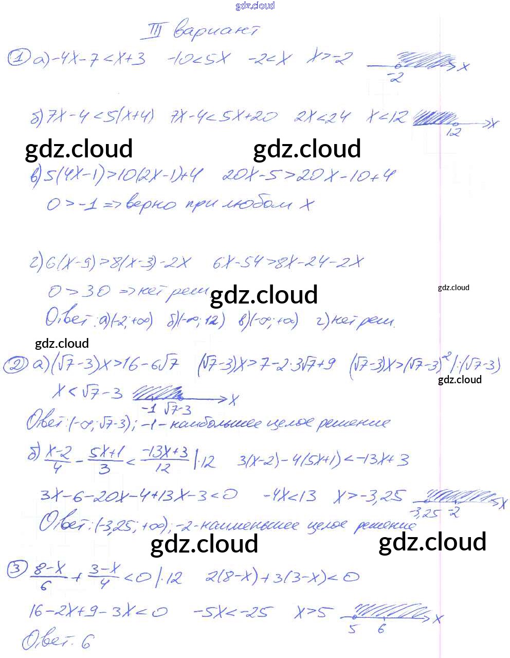 СР №1. Линейные неравенства с одним неизвестным Самостоятельные работы по Алгебре 9 класс Дидактические материалы Потапов МГУ - школе Просвещение