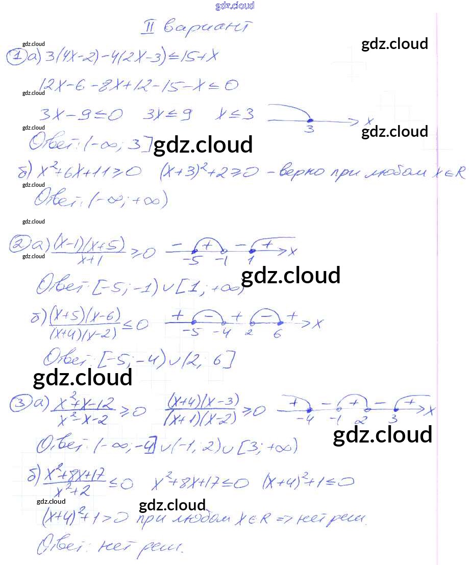 СР №10. Нестрогие неравенства Самостоятельные работы по Алгебре 9 класс Дидактические материалы Потапов МГУ - школе Просвещение