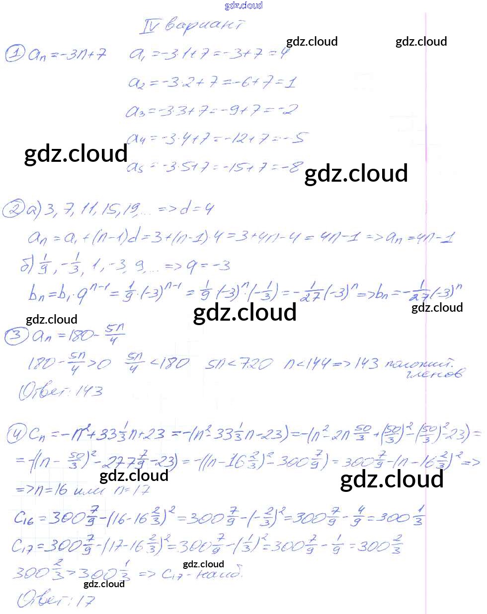 СР №17. Числовые последовательности Самостоятельные работы по Алгебре 9 класс Дидактические материалы Потапов МГУ - школе Просвещение