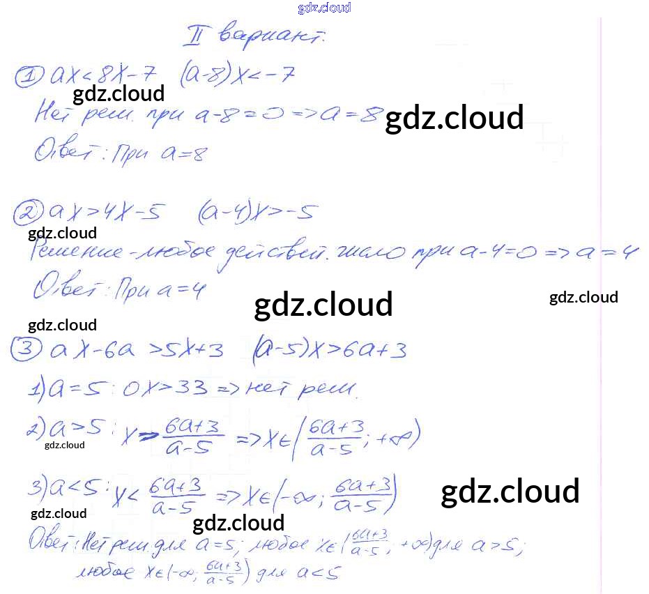 СР №2. Линейные неравенства с параметром Самостоятельные работы по Алгебре 9 класс Дидактические материалы Потапов МГУ - школе Просвещение