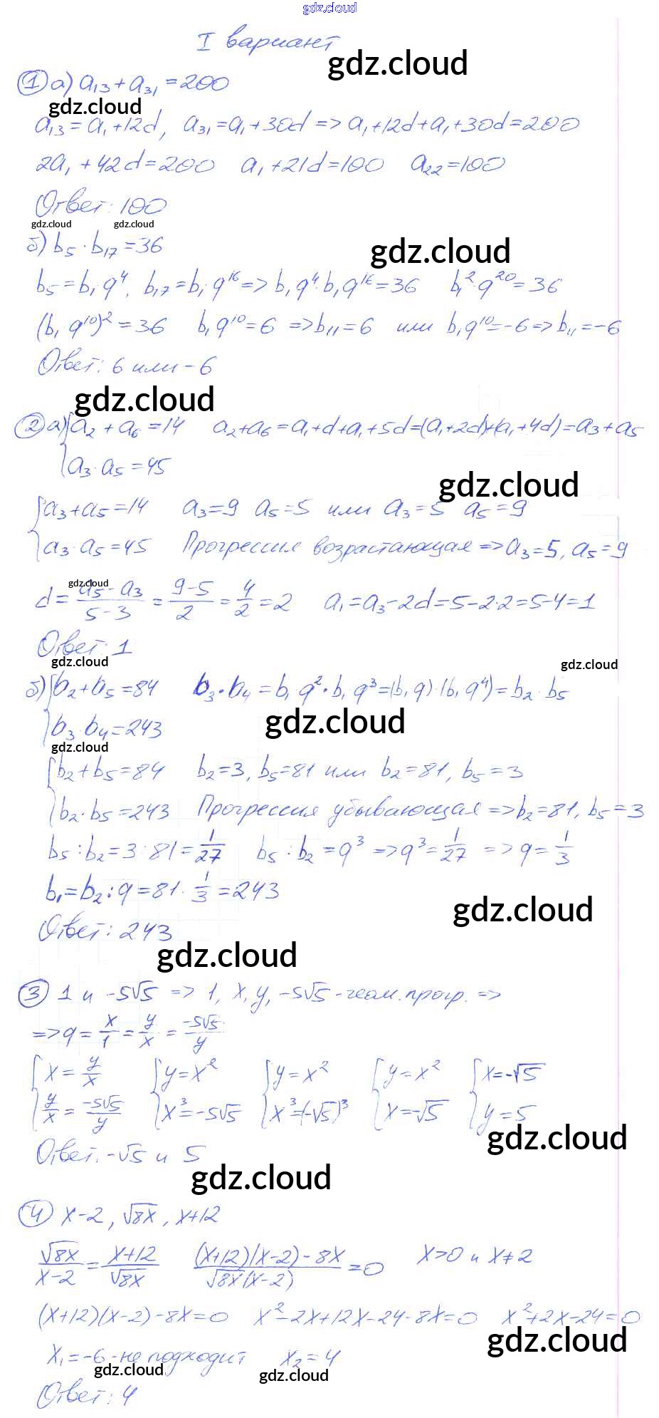 СР №20. Задачи на прогрессии Самостоятельные работы по Алгебре 9 класс Дидактические материалы Потапов МГУ - школе Просвещение