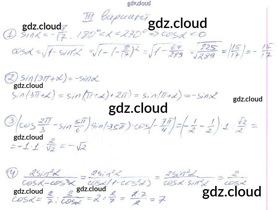 СР №24. Формулы для синуса и косинуса угла Самостоятельные работы по Алгебре 9 класс Дидактические материалы Потапов МГУ - школе Просвещение