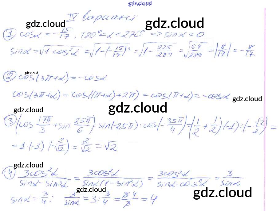 СР №24. Формулы для синуса и косинуса угла Самостоятельные работы по Алгебре 9 класс Дидактические материалы Потапов МГУ - школе Просвещение